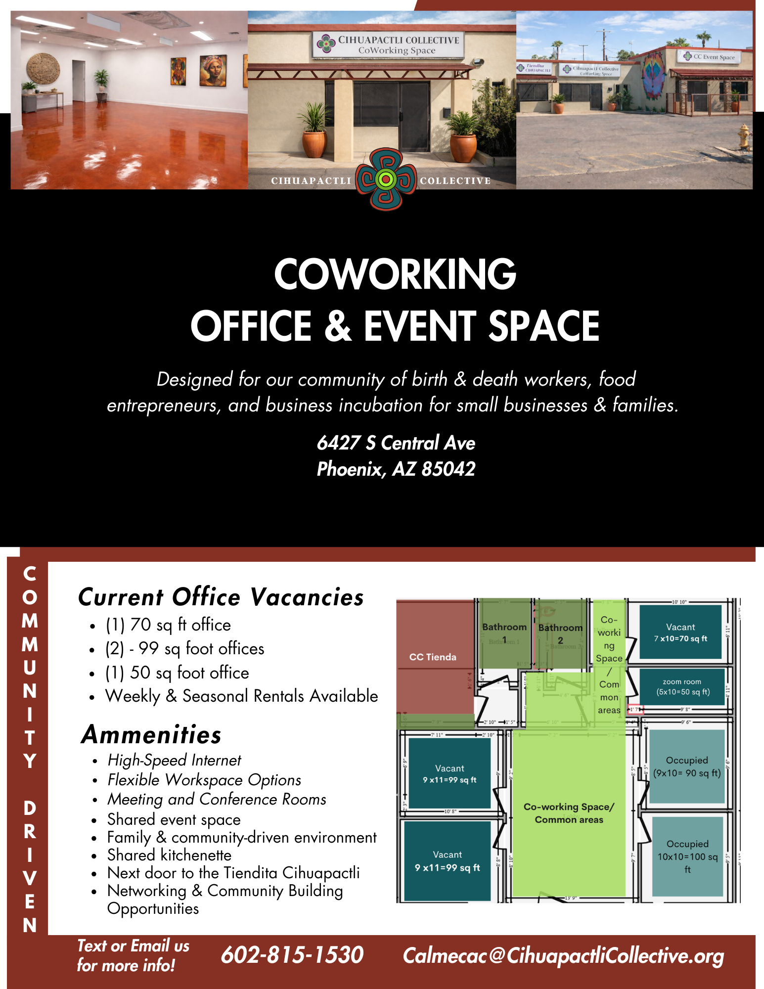 “The space is very open and inviting for others to work in a professional and private manner. I thought my requests were unattainable but I was incorrect. Cihuapactli Collective allows me to continue to serve the community. No matter the size of one’s business, Cihuapactli Collective allows one to accomplish their tasks.”